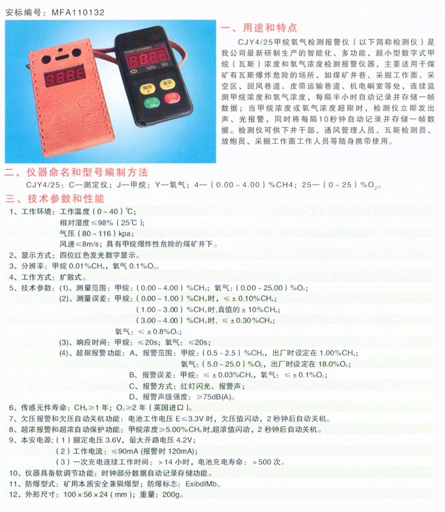 | 甲烷氧气两用仪 >> CJY4/25型甲烷氧气检测报警仪 |