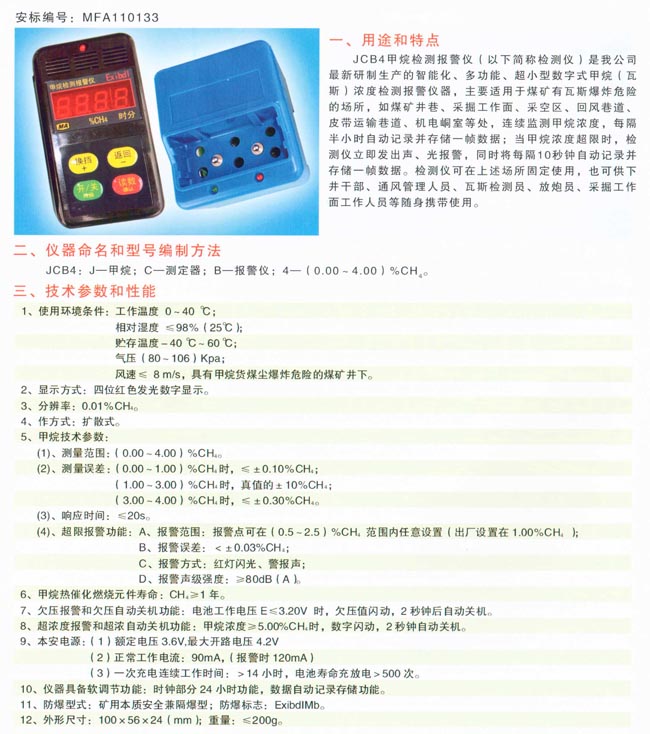 | 甲烷检测报警仪 >> JCB4型甲烷检测报警仪 |