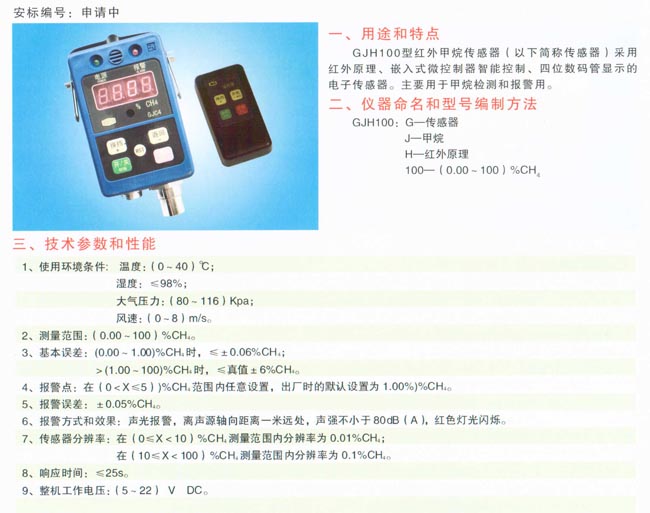 | 甲烷传感器 >> GJH/100型红外甲烷传感器 |