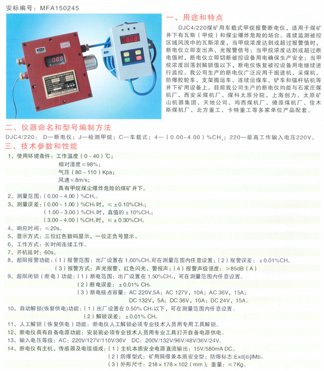 DJC4/220煤矿用车载式甲烷报警断电仪 |