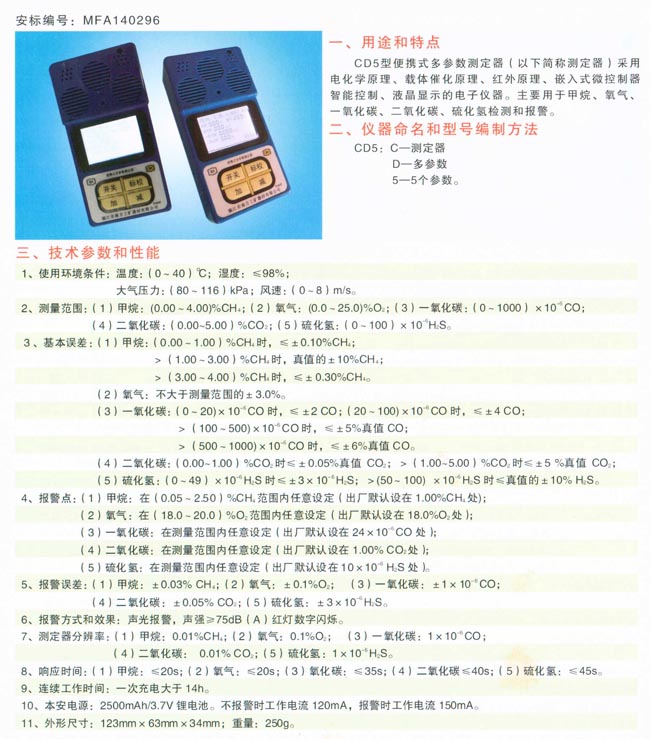 | 其他气体检测仪 >> CD5型便捷式多数测定器 |